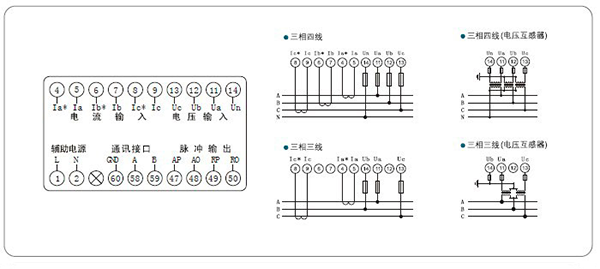 測量:三相電壓、電流、有功功率、無功功率、功率因數、電網頻率、有功電能,無功電能